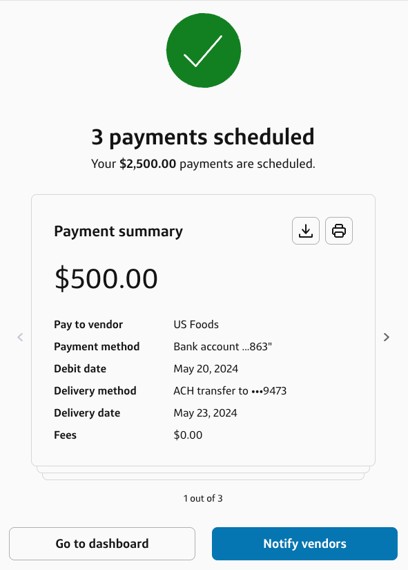 That's it! Your batch payment is on its way. You'll receive an email listing all the scheduled payments with relevant details.
