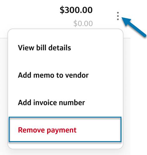 Delete a payment: Select the three dots next to the amount and select Remove payment from the dropdown list.