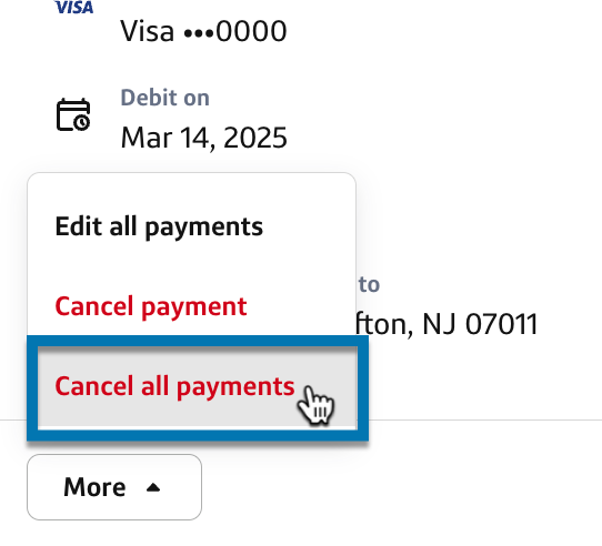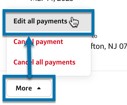 - To edit this and all future recurrences, select More and then Edit all payments.