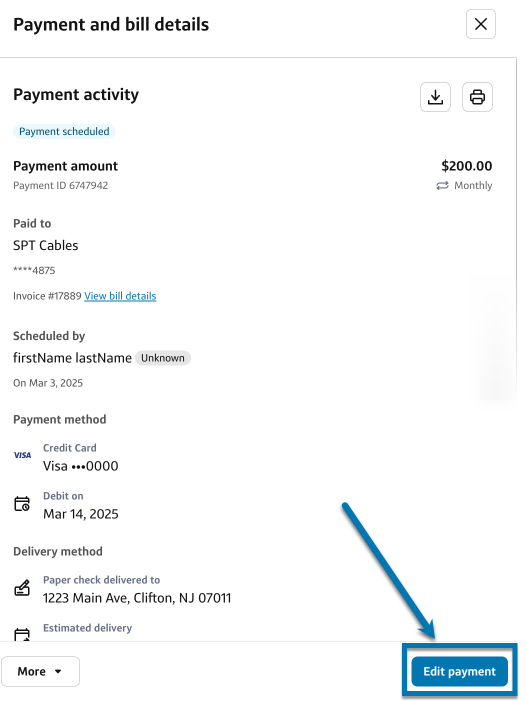 - To edit the details of that specific payment, select Edit payment at the bottom of the screen.