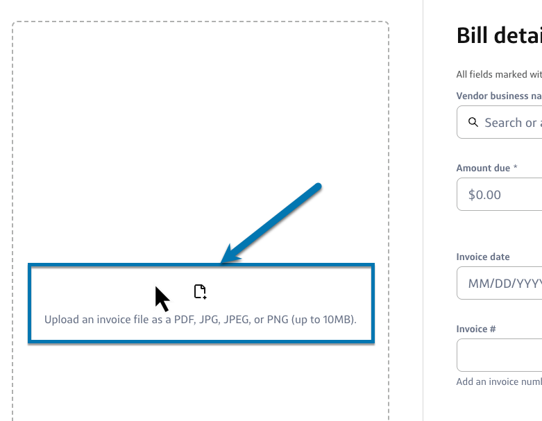 Alternatively, you can upload an invoice. The details of the bill will then be added automatically from the invoice.